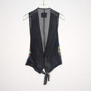 Anna Sui Vintage 90s Rainbow Semi Sheer Floral Vest Button Up Deep V-Neck Size S