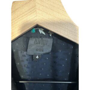 Anna Sui Womens Sheer Wrap Dress Size 4 Black With Floral Accents Short Sleeves