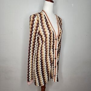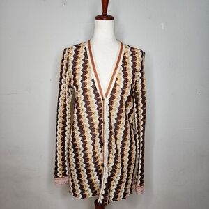 Anna Sui Zig Zag Metallic Knit V-Neck Cardigan Sweater Size Medium