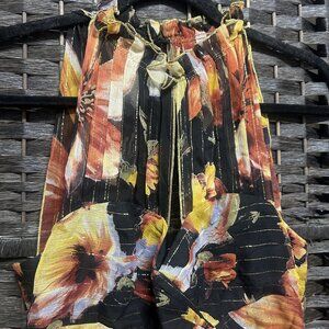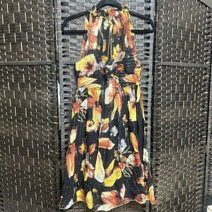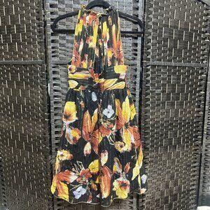Anna Sui for Anthropologie Halter Dress Black Metallic Silk Floral Size 4