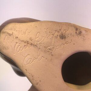 A set of 2 beautiful ANNA VAN BRIGGLE POTTERY Candle Holders Luscious Brown Glaze with speckle drip at the top Cornucopia or Horn Shape Signed on the bottom in her own handwriting ANNA VAN BRIGGLE Hard to make out but also signed in her handwriting appears to read Cola Pop ?? If you know what that says I'd love to hear it!