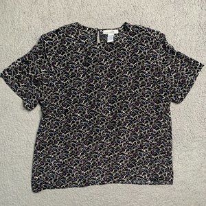 Anna and Frank Silk Blouse L Top Shoulder Pads Black geometric coastal vintage