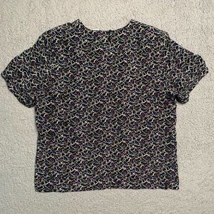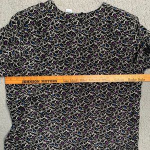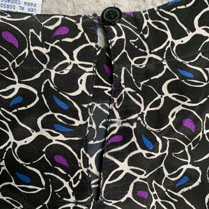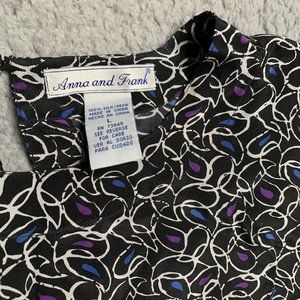 Anna and Frank Silk Blouse L Top Shoulder Pads Black Blue Purple geometric coastal core vintage