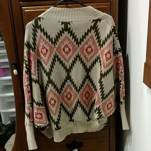 Aztec print. Tan, olive, and red