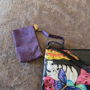 Anna by Anuschka Hand Painted Leather Crossbody Bag Butterfly Dragonfly New