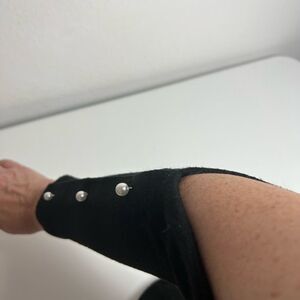 Anna Field Open-shoulder Sweater Black with White Faux Pearls Size XS/ 34 EU