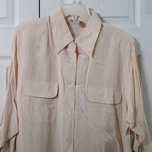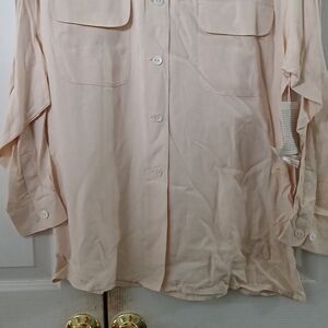 Anna Gray vintage tan button down long sleeve silk blouse Sz L NWT