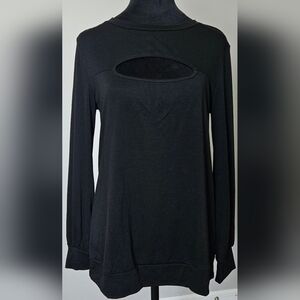Anna-Kaci Black Cut- Out Pullover Long Sleeve Top- Size S