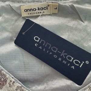 Anna-Kaci Sequin Shift Flared Tunic Mini Dress Silver Size Large 60’s Inspired is NEW WITH TAGS.