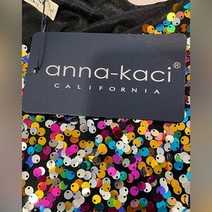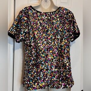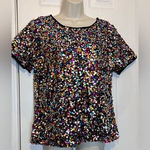 Anna-Kaci Women's Sequin Top Short Sleeve, Multi-Color, Size Large