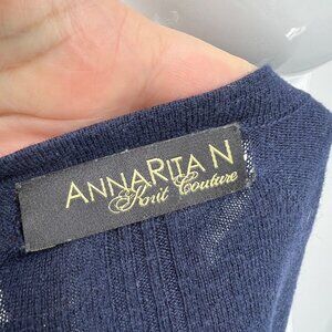 AnnaRita N Knit Couture Blue Pullover Sweater with Beaded Shoulders Chain Fringe