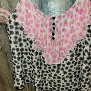 Anna Sui Black Pink Silk Ruffle Sleeveless Top Flowy Tank 2