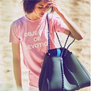 Annabel Ingall Sporty Spice Neoprene Tote in Charcoal with Cobalt Straps