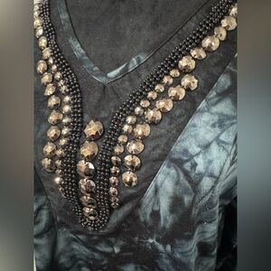 Annabell Premium V Neck Artsy Beaded neckline Long Sleeve Tunic Size Small