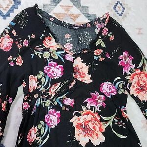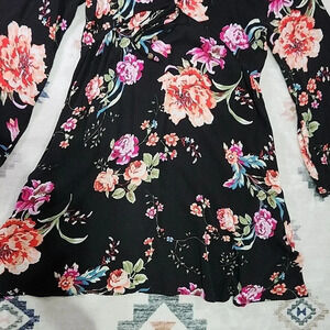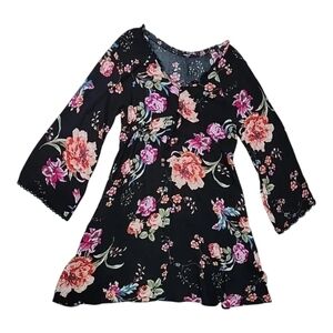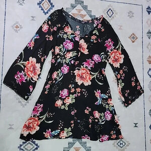 Annabelle Black Floral Boho Babydoll Dress Size L