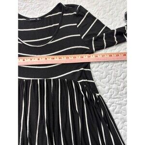 Annabelle Black White Striped Flowy Fit & Flare Long Sleeve Dress size medium