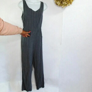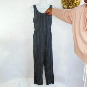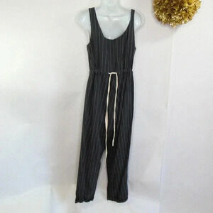 Annabelle Black and White Pinstripe Women's Linen Blend Jumpsuit Size Small