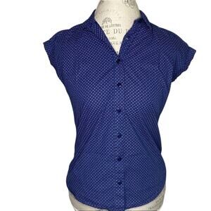 Annabelle Blue & Pink Cap Sleeve Button Up Shirt Women's Size XSmall