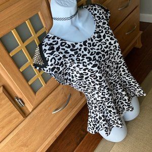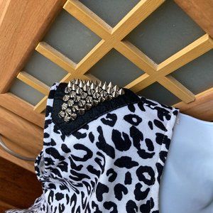 Annabelle Cow Print Peplum Blouse with Silver Spikes Large Jr.