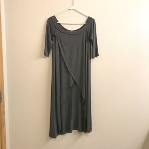 In like new condition. Color is a dark heather gray, last photo is same size on me in a different color. Super cute high low tunic, with a tulip style front. Great worn with leggings or jeans or even over a skirt. Length is 38" from high shoulder to hem. The split in front starts below your waist, so it is long enough to wear with leggings. Purchased from a local boutique similar to Free People- Brand is Annabelle. Could fit a small or medium, depending on the arm size. Fabric is a soft and drapey Jersey.
