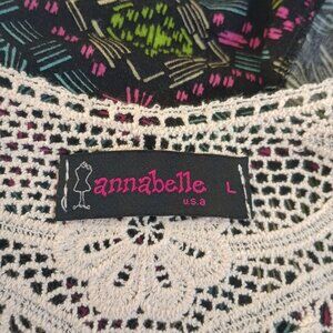Annabelle Multicolor Scoop Neck Short Sleeve Top Size L Bohemian Crochet Accent
