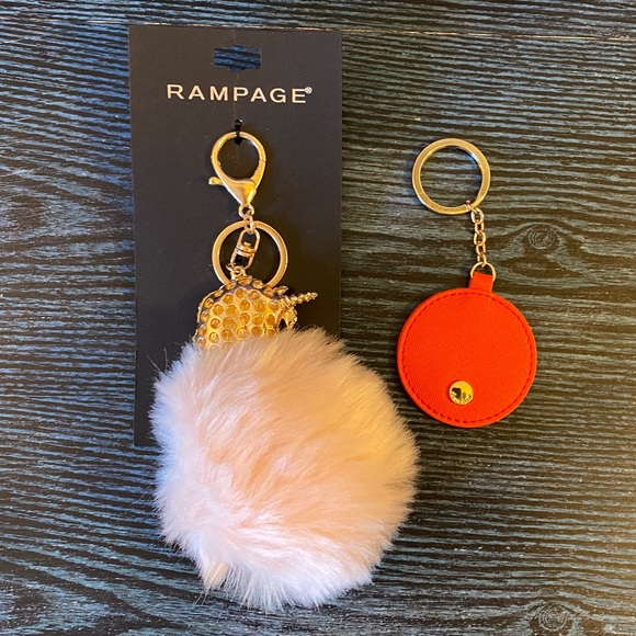 Rampage Furry Pink Ball, Pink & Silver Crystal Unicorn, w/ Gold Tone Keychain