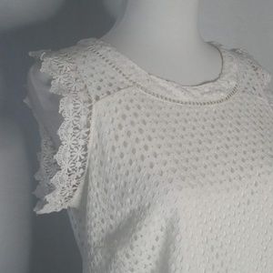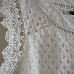 Annabelle White Lace Crochet Round Neck sleeveless eyelet Top Size Small