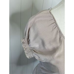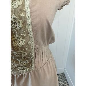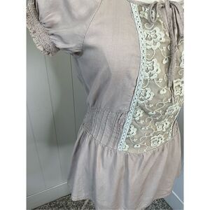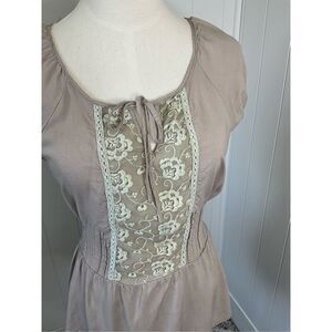Annabelle Womens Size Medium Peplum Top Beige Embroidered Tie Neck Boho