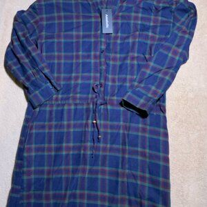 Annabelle Women's Sz Large Blue Flannel Button Down Tie Long Sleeve Tunic (I)