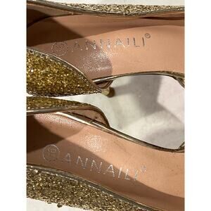 Annaili Women’s Glitters Sparkly D'Orsay Pump Stiletto Heels Size 5.5 Gold Fairy
