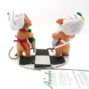 This adorable Annalee Christmas Doll features a two cute little mice dressed as bakers holding piping bags with dabs of frosting around them. #600011, Dated 2011.