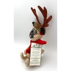 Annalee 5 inch Cozy Pug Dog Reindeer Cloth Figure 2012 New with Tags