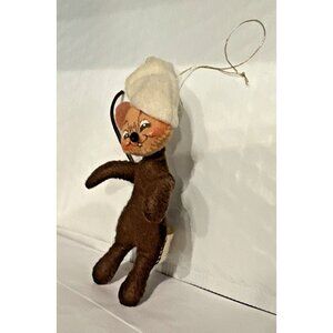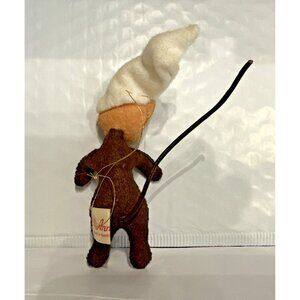 Annalee Brown Christmas Mouse Wearing White Elf Hat Felt Hanging Ornament 5" Posable Vintage 2001