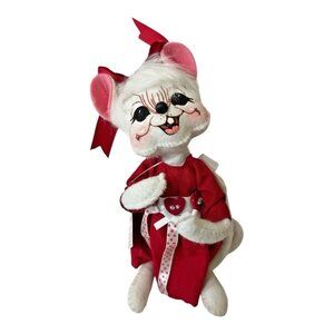 Annalee Dolls Valentine Girl Mouse 6" Poseable Plush Tags Handmade White Red