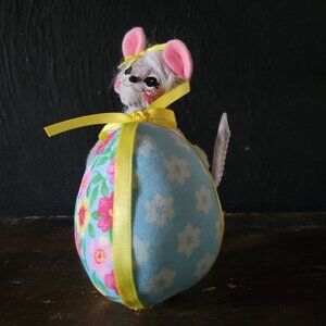 Annalee Lee Easter Girl Mouse with Large Floral Easter Egg, Easter Decor c. 2014