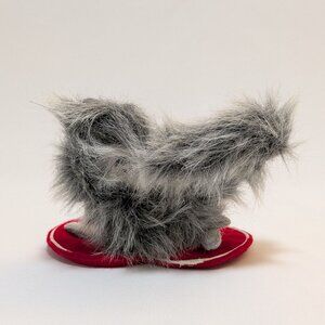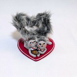 This retired design features two squirrels with an acorn sitting on a heart shaped pad. They are forming a heart with their tails, which have gemstones! A charming addition to any doll collection.