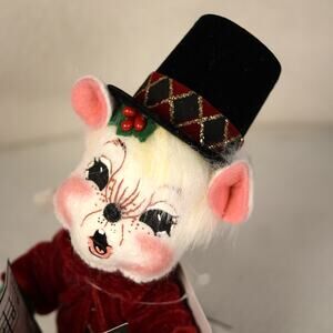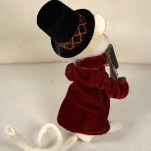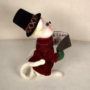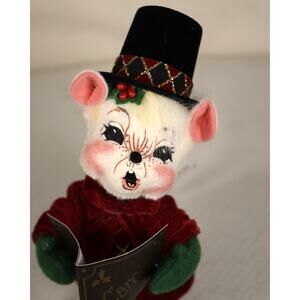 This 2007 Christmas Dad Mouse is holding a carols songbook and singing. He is wearing a black top hat, a red jacket, a diamond red & green vest, and matching hatband. A great addition to your collection.