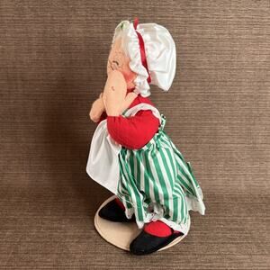 Annalee Mrs Claus, 2004 Christmas doll, vintage holiday figure, handmade cloth doll, festive decor, collectible Annalee, striped skirt doll, holly hair doll, poseable Christmas doll, pre-owned Annalee