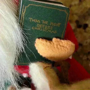 Adorable RARE Santa made by Annalee. Santa has so many cute details even with the Twas the Night Before Christmas book. Blanket has a small mark on it. New with tags. From 2005.