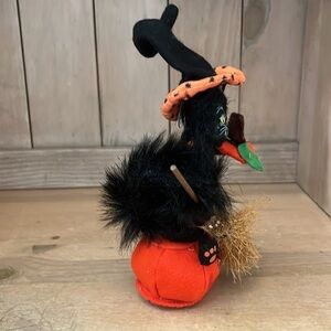 Annalee Witch Cat “Midnight Ride Kitty” Pumpkin Broom Hat