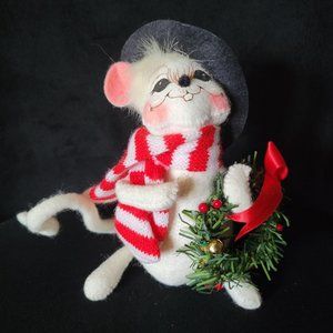 Annalee Yuletide Mouse w/ Top Hat, Scarf and Wreath 2006