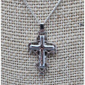 Annaleece Silver Tone Reversible Cross Pendant Necklace Crystal 18" Religious
