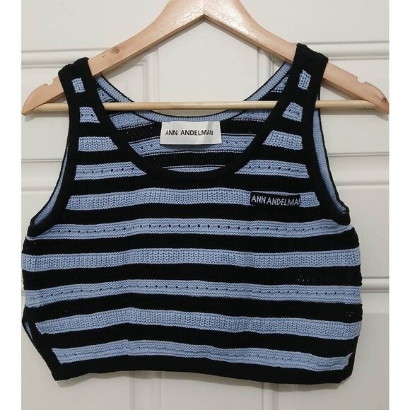 Ann andelman womens large cropped knit top blue black