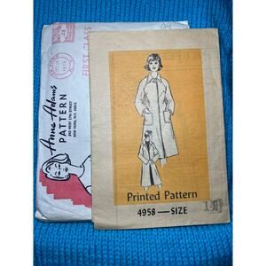 Anne Adams Sewing pattern 4958 trench long coat 1970s size 14
