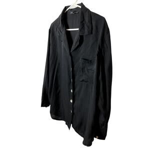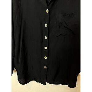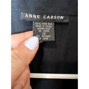Anne Carson 100% Silk Black Button Down Collared Top 1X