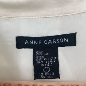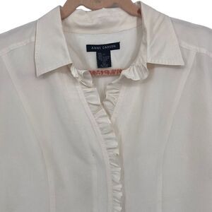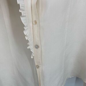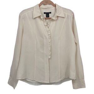 Anne Carson 100% Silk Long Sleeve Ruffle Front Blouse Cream Large