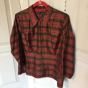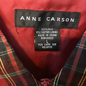 Anne Carson Holiday Plaid Silk Zip Jacket L