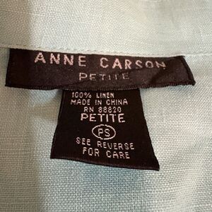 Anne Carson Shirt Womens Petite Small Blue Linen Eyelet Embroidered Button