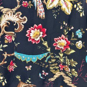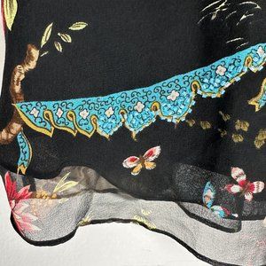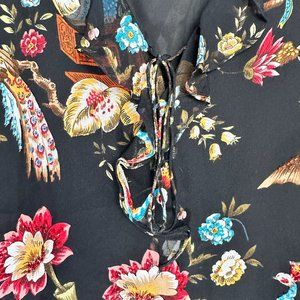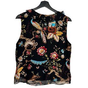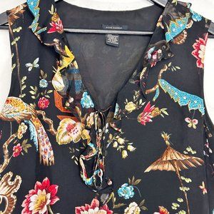 Anne Carson Silk Black Floral Ruffle Sequin Front Tie Sleeveless Blouse M