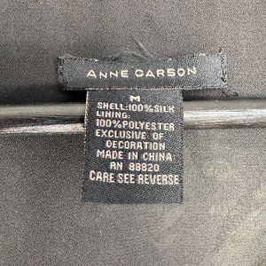 The Anne Carson silk black floral ruffle sequin front tie sleeveless blouse is a high-fashion piece that combines elegance with comfort. Its ruffle sequin design and floral pattern make it an ideal choice for any stylish closet. • High-quality silk material • Stylish black floral design • Ruffle sequin embellishments • Convenient front tie • Comfortable sleeveless style • Suitable for size M Features: • lined Size: Womens M Measurements: armpit to armpit 19 in / 48 cm length 22 in / 56 cm Condition: Pre-Owned Good My goal is for you to be delighted with your purchase. Feel free to ask questions before purchasing. I add new items regularly, so stop by for more classy and chic finds! 6207a4365e0ba8a827c97005